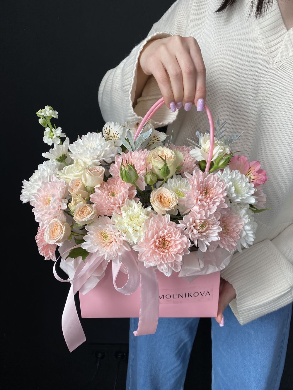 Почувствуйте лёгкость и свежесть в объятиях нежной композиции розового оттенка. Букет, пропитанный весенним благоуханием и ароматом цветущих садов, напоминает свежий ветерок, заряжающий позитивом и хорошим настроением.