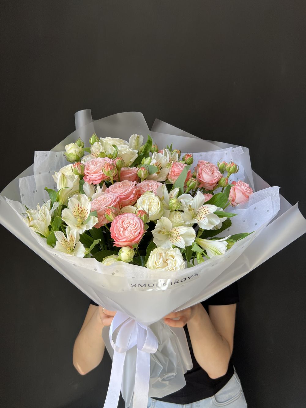 Этот стильный букет состоит из 4 премиум кустовых роз и 3 альстромерий. Их яркие цвета и изящные формы создают гармоничное сочетание, которое добавит изысканности любому событию. Подарите своим близким этот прекрасный знак внимания и любви!