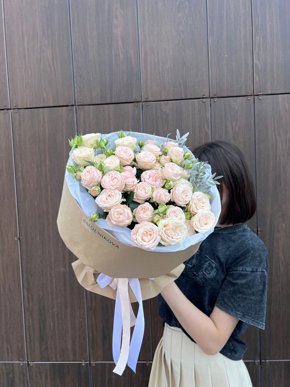 Восхитительный букет из 7 веток кустовых роз! Пышное облако нежных бутонов, дарящее радость и восхищение