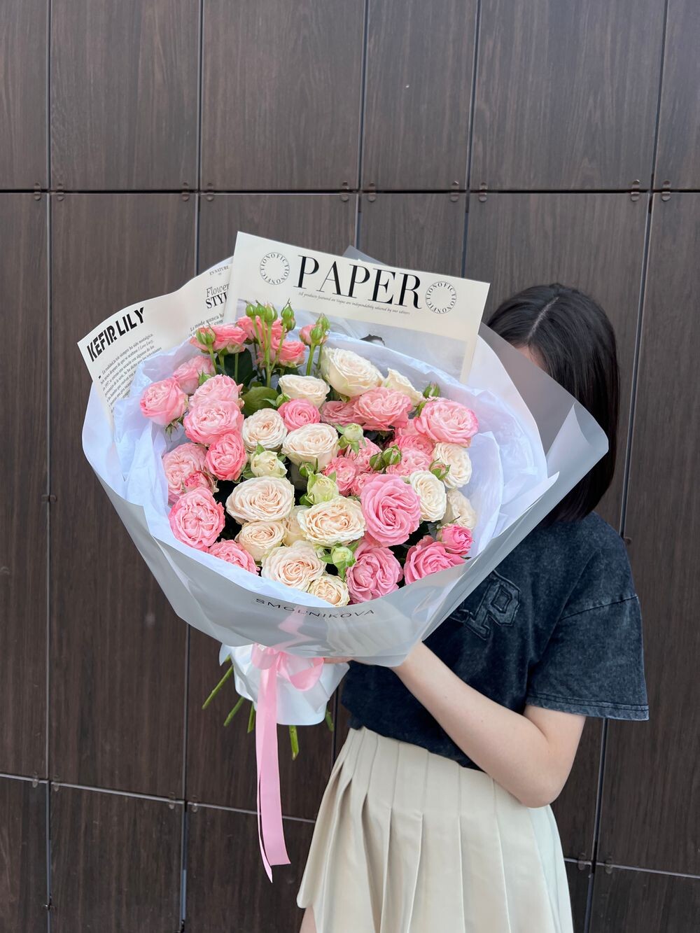 Пышное облако из 11 веток кустовых роз! Этот роскошный букет, словно сотканный из нежности и любви, станет незабываемым подарком и подарит море положительных эмоций