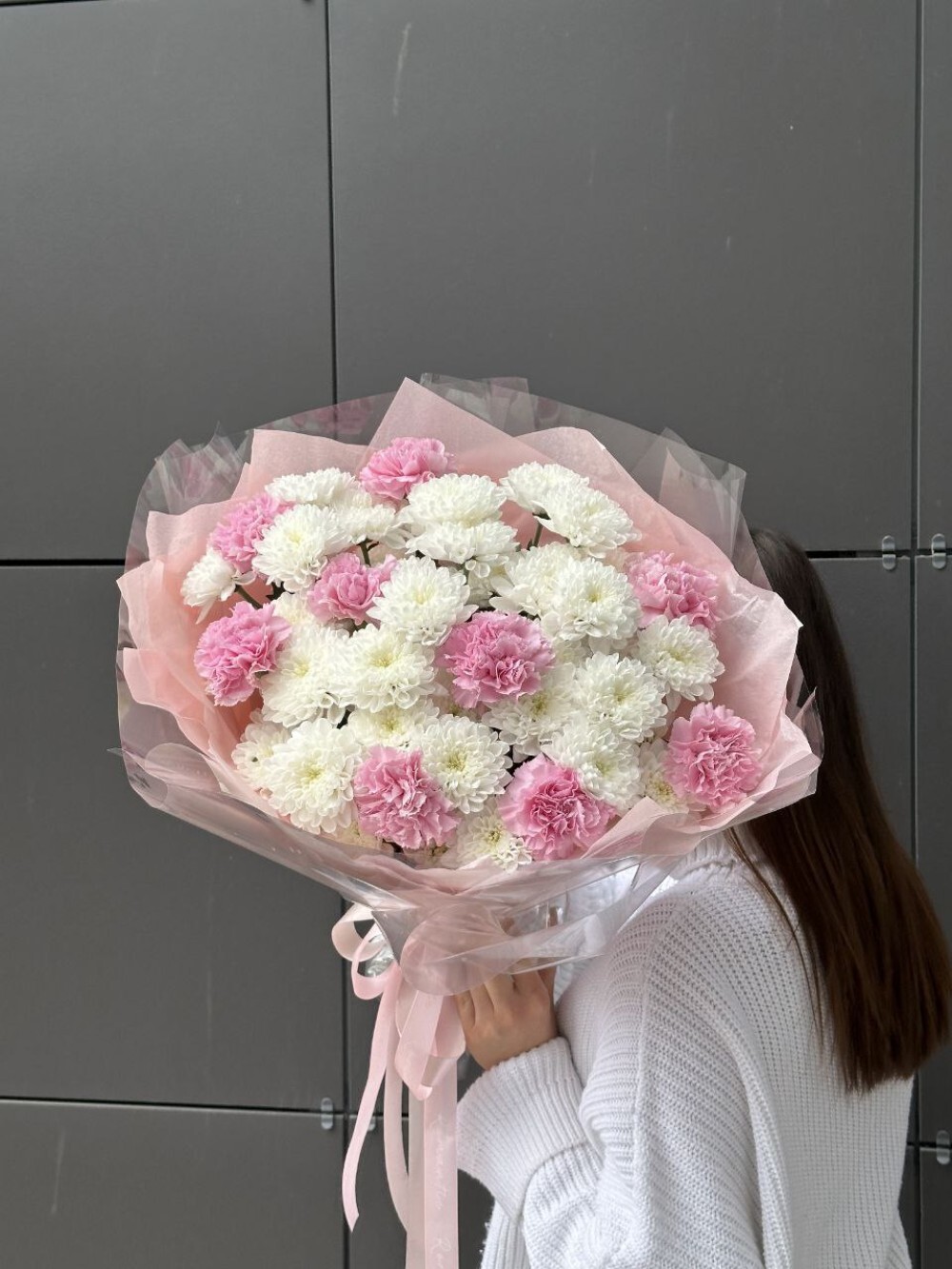 Вау букет из хризантем и диантусов