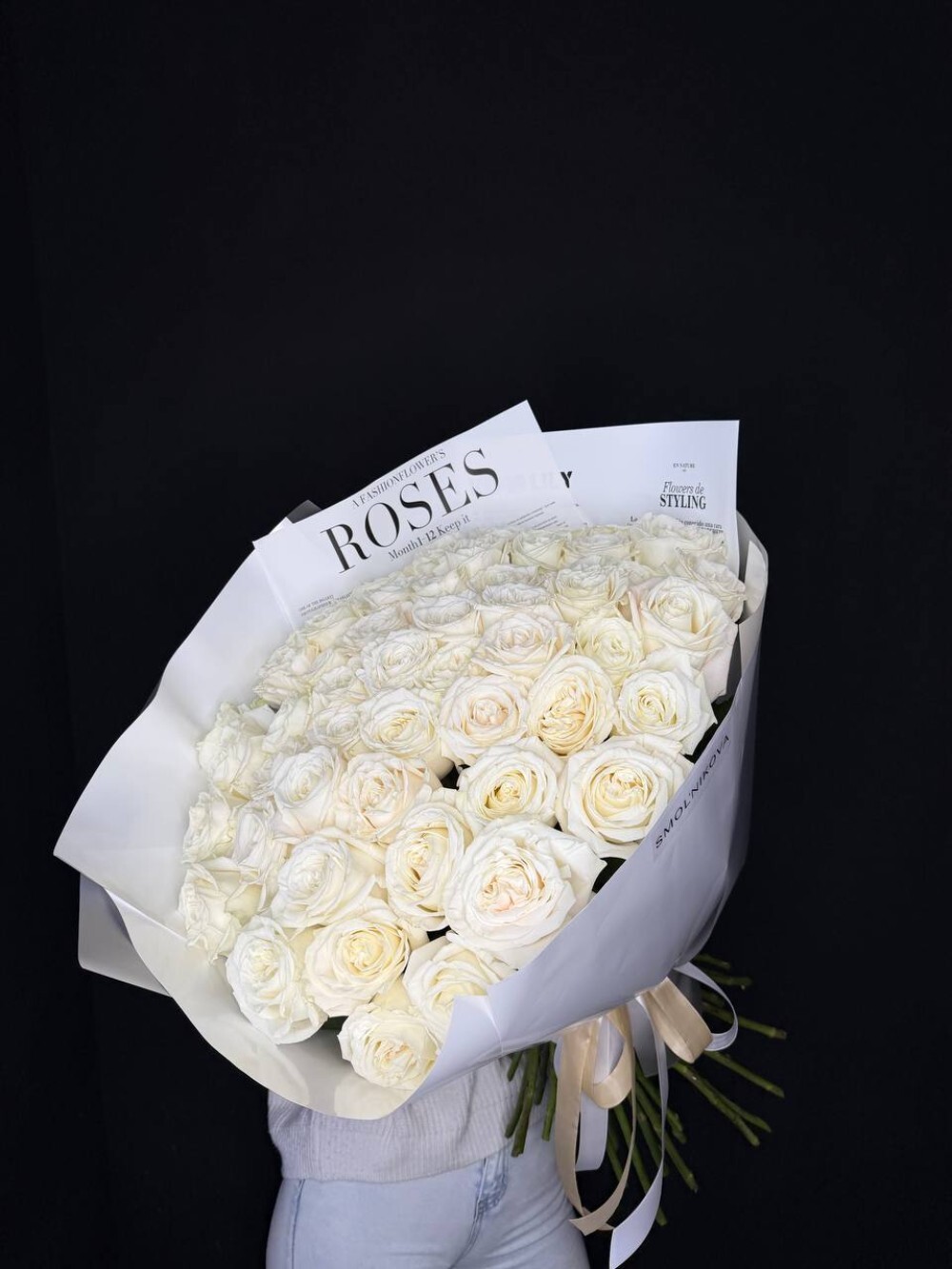 Роскошная белоснежная 51 белая роза Эквадора ❤️ Идеально бела роза для особых случаев